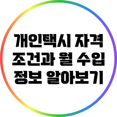 개인택시 자격 조건과 월 수입에 대한 정보를 자세히 알아보세요.