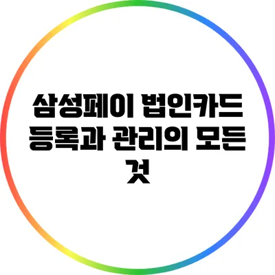 간단하게 요약하자면, 법인카드 등록 및 관리는 경비처리의 혁신을 가져오는 필수 과정이에요. 삼성페이를 통해 더 나은 결제 환경을 경험해보세요!