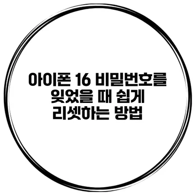 아이폰 16의 비밀번호를 리셋하는 방법은 크게 두 가지가 있어요. 각 방법은 단계별로 상세히 설명해 드릴게요.