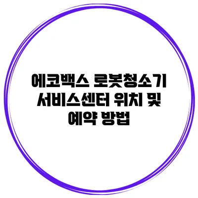 에코백스 서비스센터의 위치와 예약 방법을 지금 바로 알아보세요.