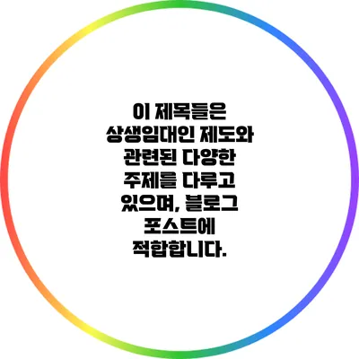 이 제목들은 상생임대인 제도와 관련된 다양한 주제를 다루고 있으며, 블로그 포스트에 적합합니다.