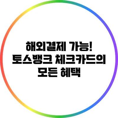 최근 해외 여행을 계획하는 사람들이 많아지고 있는데요. 이러한 시기에 해외결제 가능 체크카드가 얼마나 유용한지를 아는 것은 매우 중요해요. 특히, 토스뱅크 체크카드는 다양한 혜택을 알려드려 많은 이들의 관심을 받고 있습니다. 그래서 오늘은 토스뱅크 체크카드의 모든 매력을 상세히 알아보도록 할게요.