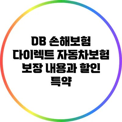 자동차보험을 선택할 때, 가장 중요하게 고려해야 할 요소는 바로 보장 내용과 할인 특약이에요. 많은 보험사 중에서도 DB 손해보험은 다양한 옵션을 알려드려 소비자들에게 많은 사랑을 받고 있습니다. 이번 글에서는 DB 손해보험 다이렉트 자동차보험의 보장 내용과 할인 특약에 대해 상세히 알아보아요.
